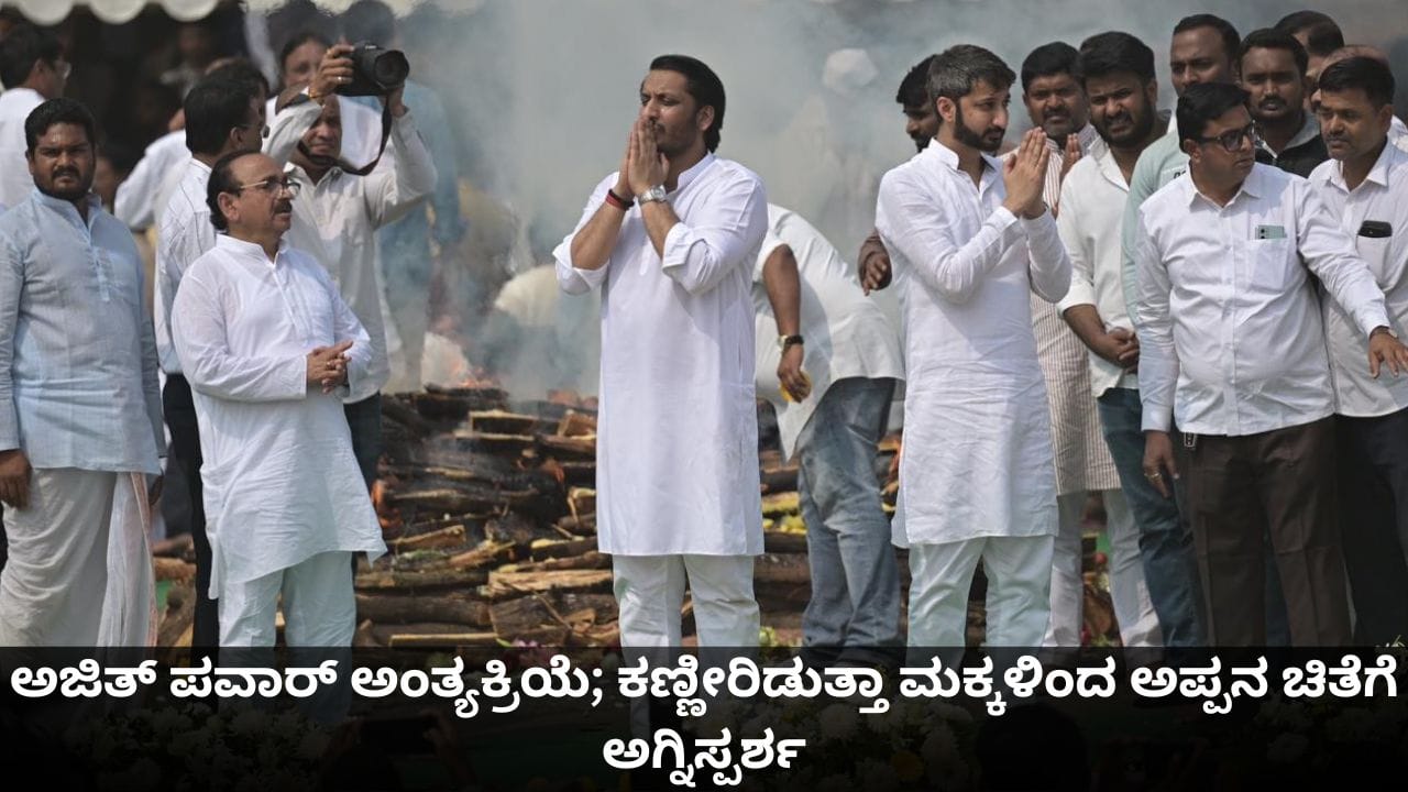 ಪುಣೆ, ಜನವರಿ 29: ಮಹಾರಾಷ್ಟ್ರದ ಡಿಸಿಎಂ ಹಾಗೂ ಎನ್ಸಿಪಿ ನಾಯಕ ಅಜಿತ್ ಪವಾರ್ (Ajit Pawar) ಅವರ ಅಂತ್ಯಕ್ರಿಯೆ ಇಂದು ನೆರವೇರಿದೆ. ನಿನ್ನೆ ಬಾರಾಮತಿಯಲ್ಲಿ ನಡೆದ ವಿಮಾನ ದುರಂತದಲ್ಲಿ ಅವರು ಮೃತಪಟ್ಟಿದ್ದರು. ಅಜಿತ್ ಪವಾರ್ ಅವರ ಅಂತ್ಯಕ್ರಿಯೆ ಇಂದು ಬೆಳಿಗ್ಗೆ 11 ಗಂಟೆ ಸುಮಾರಿಗೆ ಪುಣೆಯ ಬಾರಾಮತಿಯ ವಿದ್ಯಾ ಪ್ರತಿಷ್ಠಾನ ಮೈದಾನದಲ್ಲಿ ಪೂರ್ಣ ಸರ್ಕಾರಿ ಗೌರವಗಳೊಂದಿಗೆ ನಡೆಯಿತು. ಅವರ ಪುತ್ರರಾದ ಪಾರ್ಥ್ ಮತ್ತು ಜೇ ತಮ್ಮ ತಂದೆಯ ಅಂತ್ಯಕ್ರಿಯೆಯ ವಿಧಿ-ವಿಧಾನಗಳನ್ನು ನಡೆಸಿದರು. ಕೇಂದ್ರ ಸಚಿವ ಅಮಿತ್ ಶಾ, ನಿತಿನ್ ಗಡ್ಕರಿ, ಮಹಾರಾಷ್ಟ್ರದ ಸಿಎಂ ದೇವೇಂದ್ರ ಫಡ್ನವೀಸ್ ಸೇರಿದಂತೆ ಹಲವರು ಅಂತಿಮ ನಮನ ಸಲ್ಲಿಸಿದರು.