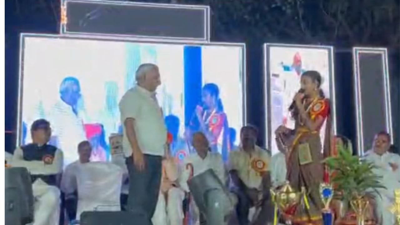 “ಬರ್ರಿ ಸಾಹೇಬ್ರ ಮುಂದಕ್ಕೆ ಬರ್ರಿ… ನೀವು ಮಂತ್ರಿ ಆಗ್ತೀರಿ ಅಂತ ನಮ್ಮ ಚಿಕ್ಕಮ್ಮ ಹೇಳಿದ ಖಣಿ ನಿಜ ಆಗೈತಿ.” “ಈಗ ನಾನು ಹೇಳ್ತೀನಿ ಕೇಳ್ರಿ, ಮುಂದೆ ನೀವು ರಾಜ್ಯದ ಮುಖ್ಯಮಂತ್ರಿ ಆಗುವ ಸುಯೋಗ ಐತಿ!” “ಇದನ್ನು ನಾನು ಹೇಳ್ತಿಲ್ಲ, ಗುಡ್ಡದ ಯಲ್ಲವ್ವ ನನ್ನ ಬಾಯಿಂದ ನುಡಿಸ್ತಾ ಇದ್ದಾಳೆ” ಎಂದು ಹೇಳಿ ಸಚಿವರಿಂದ ದಕ್ಷಿಣೆಯನ್ನೂ ಪಡೆದಳು. ವಿದ್ಯಾರ್ಥಿನಿಯ ಈ ಮಾತಿನಿಂದ ಸಚಿವರು ಫುಲ್ ಖುಷಿಯಾಗಿದ್ದು, ಆ ವಿಡಿಯೋವನ್ನು ತಮ್ಮ ಫೇಸ್ಬುಕ್ ಪುಟದಲ್ಲಿ ಹಂಚಿಕೊಂಡಿದ್ದಾರೆ. “ಬಡವರ ಬಂಧು, ಶಿಕ್ಷಣ ಪ್ರೇಮಿ” ಎಂದು ವಿದ್ಯಾರ್ಥಿನಿ ಹೊಗಳಿದ್ದಕ್ಕೆ ಸಚಿವರು ನಗುನಗುತ್ತಲೇ ದಕ್ಷಿಣೆ ನೀಡಿ ಹರಸಿದ್ದಾರೆ.