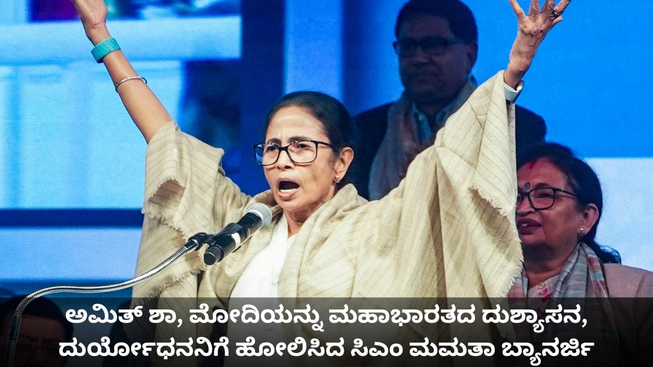 ಕೊಲ್ಕತ್ತಾ, ಡಿಸೆಂಬರ್ 30: ಚುನಾವಣೆ ನಡೆಯಲಿರುವ ಪಶ್ಚಿಮ ಬಂಗಾಳ ರಾಜ್ಯದಲ್ಲಿ ಭಯೋತ್ಪಾದಕ ಜಾಲಗಳು ಕಾರ್ಯನಿರ್ವಹಿಸುತ್ತಿವೆ ಎಂದು ಕೇಂದ್ರ ಗೃಹ ಸಚಿವ ಅಮಿತ್ ಶಾ (Amit Shah) ಸೋಮವಾರ ತಮ್ಮ ಕೊಲ್ಕತ್ತಾ ಭೇಟಿಯ ವೇಳೆ ಆರೋಪಿಸಿದ್ದರು. ಇದಕ್ಕೆ ಇಂದು ತಿರುಗೇಟು ನೀಡಿರುವ ಪಶ್ಚಿಮ ಬಂಗಾಳದ ಸಿಎಂ ಮಮತಾ ಬ್ಯಾನರ್ಜಿ, ಅಮಿತ್ ಶಾ ಮತ್ತು ಪ್ರಧಾನಿ ನರೇಂದ್ರ ಮೋದಿ ಅವರನ್ನು ಮಹಾಭಾರತದ ಇಬ್ಬರು ಖಳ ನಾಯಕರಾದ ದುಶ್ಯಾಸನ ಮತ್ತು ದುರ್ಯೋಧನನಿಗೆ ಹೋಲಿಸಿದ್ದಾರೆ.