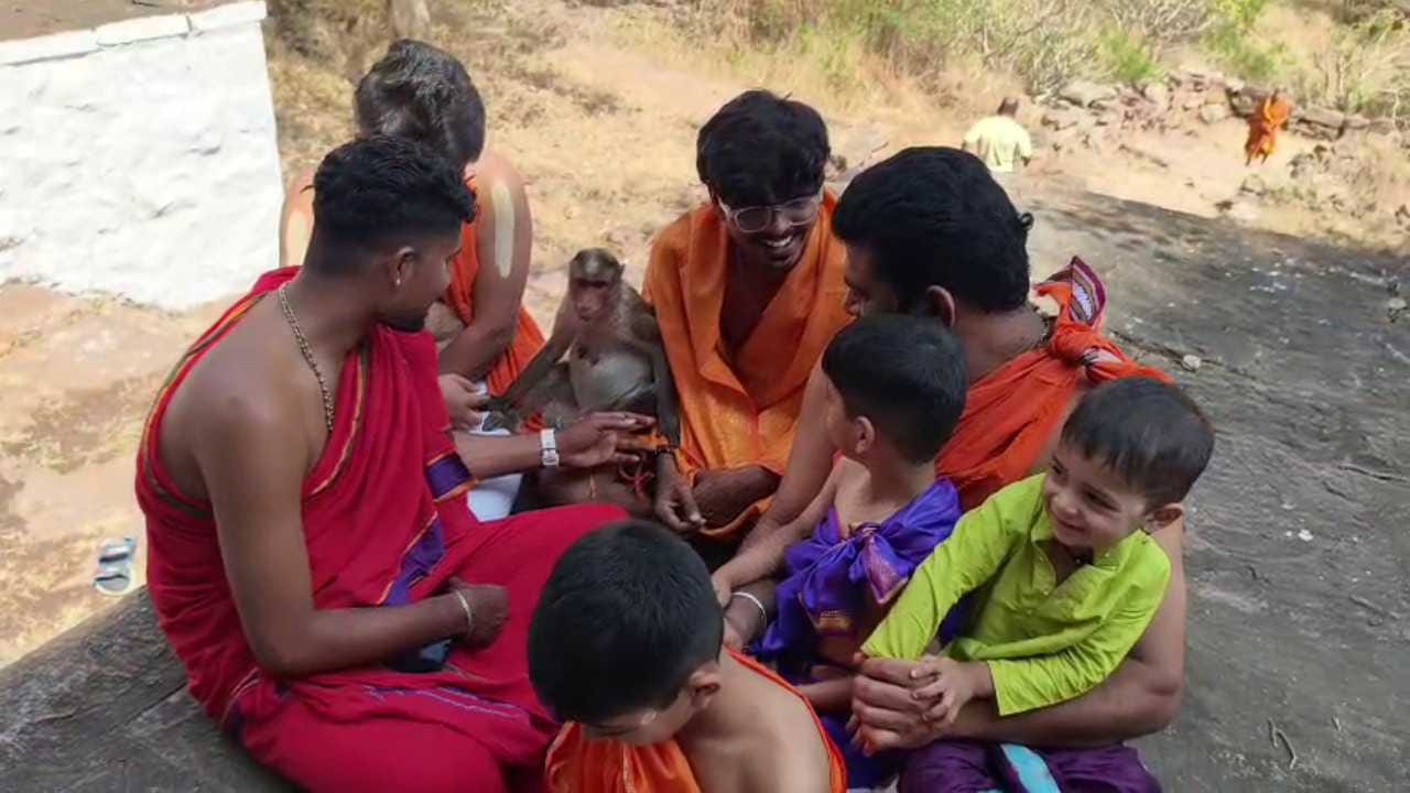 ಬಾಗಲಕೋಟೆ, ಜನವರಿ 28: ಜಿಲ್ಲೆಯ ಬಾದಾಮಿ ಪಟ್ಟಣದ ಬತ್ತೆರೇಶ್ ಆಂಜನೇಯ ದೇವಸ್ಥಾನದಲ್ಲಿ ಮಧ್ವನವಮಿ ಆಚರಣೆ ವೇಳೆ ಅಪರೂಪದ ದೃಶ್ಯವೊಂದು ಕಂಡುಬಂದಿದೆ. ಇನಾಂದಾರ ಕುಟುಂಬದವರಿಂದ ಮಧ್ವಾಚಾರ್ಯ ಜಯಂತಿ ಪೂಜೆ ನಡೆಯುತ್ತಿದ್ದ ಸಂದರ್ಭದಲ್ಲಿ ಮಂಗವೊಂದು ದೇವಸ್ಥಾನಕ್ಕೆ ಆಗಮಿಸಿ ಭಕ್ತರ ನಡುವೆ ನಿರ್ಭಯವಾಗಿ ಓಡಾಡಿ ಎಲ್ಲರ ಗಮನ ಸೆಳೆದಿದೆ. ಪೂಜೆಯಲ್ಲಿ ನಿರತರಾಗಿದ್ದ ಭಕ್ತರ ಬಳಿ ಹೋಗಿ ತೊಡೆಯ ಮೇಲೆ ಕುಳಿತು ಅಚ್ಚರಿ ಮೂಡಿಸಿದೆ. ಯಾರಿಗೂ ಭಯಪಡದೆ ಪ್ರೀತಿಯಿಂದ ವರ್ತಿಸಿದ ಮಂಗ ಭಕ್ತರ ಮನ ಗೆದ್ದಿತು. ಈ ವೇಳೆ ಭಕ್ತರು ಮಂಗನಿಗೆ ಹಣ್ಣುಗಳನ್ನು ಪ್ರಸಾದವಾಗಿ ನೀಡಿದರು.