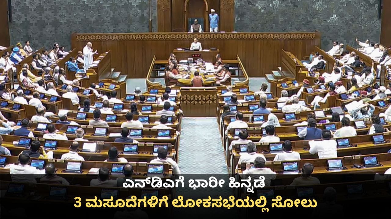 ನವದೆಹಲಿ, ಏಪ್ರಿಲ್ 17: ಕೇಂದ್ರ ಸರ್ಕಾರದ ಮಹತ್ವಾಕಾಂಕ್ಷೆಯ ಮಸೂದೆಗಳು ಲೋಕಸಭೆಯಲ್ಲಿ ಇಂದು ಸಂಜೆ ನಡೆದ ಬಹುಮತ ಪರೀಕ್ಷೆಯಲ್ಲಿ ವಿಫಲವಾಗಿದೆ. ಕ್ಷೇಪ್ರ ಪುನರ್ ವಿಂಗಡಣೆ ಮತ್ತು ಮಹಿಳಾ ಮೀಸಲಾತಿ ಮಸೂದೆಗೆ ಸಾಂವಿಧಾನಿಕ ತಿದ್ದುಪಡಿಗೆ ಅಗತ್ಯವಾದ ಮೂರನೇ ಎರಡರಷ್ಟು ಬಹುಮತ ಸಿಗದ ಹಿನ್ನೆಲೆಯಲ್ಲಿ ಈ ಮಸೂದೆ ಲೋಕಸಭೆಯಲ್ಲಿ ಬಹುಮತ ಪರೀಕ್ಷೆಯಲ್ಲಿ ವಿಫಲವಾಗಿದೆ. ಮಹಿಳಾ ಮೀಸಲಾತಿ ಮತ್ತು ಕ್ಷೇತ್ರ ಪುನರ್ ವಿಂಗಡಣೆ ಮಸೂದೆಗಳು ಸೇರಿದಂತೆ ಸಂಸತ್ತಿನಲ್ಲಿ ಗುರುವಾರ ಪರಿಚಯಿಸಲಾದ 3 ಪ್ರಮುಖ ಮಸೂದೆಗಳ ಮೇಲೆ ಲೋಕಸಭೆಯಲ್ಲಿ ಇಂದು ಮತದಾನ ನಡೆದಿದೆ.