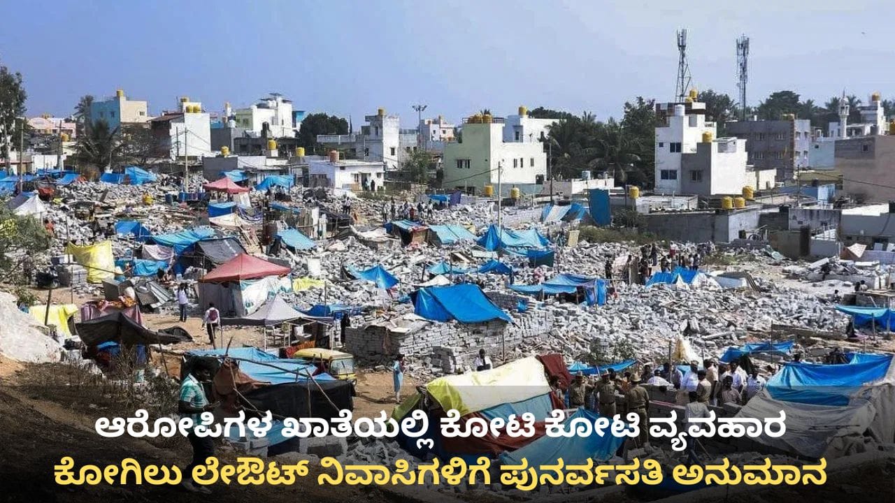 ಕೋಗಿಲು ಲೇಔಟ್ನ ಫಕೀರ್ ಲೇಔಟ್ ಹಾಗೂ ವಸೀಂ ಲೇಔಟ್ನಲ್ಲಿ ಸರ್ಕಾರಿ ಜಾಗ ಒತ್ತುವರಿ ಮಾಡಿ ಶೆಡ್ ನಿರ್ಮಾಣ ಮಾಡಿಕೊಳ್ಳಲು ಆರೋಪಿಗಳಾದ ವಸೀಂ ಹಾಗೂ ವಿಜಯ್ ಮತ್ತು ರಾಬಿನ್ ಎಂಬುವವರು ಲಕ್ಷ ಲಕ್ಷ ಹಣ ಪಡೆದಿದ್ದರು ಎನ್ನಲಾಗಿದೆ. ಮೂವರ ಬ್ಯಾಂಕ್ ಖಾತೆಗಳ ಜಾಲಾಡಿದಾಗ ಕೋಟ್ಯಂತರ ರೂಪಾಯಿ ವ್ಯವಹಾರ ನಡೆದಿರುವುದು ಗೊತ್ತಾಗಿದೆ. ಪೊಲೀಸರ ತನಿಖೆಯಲ್ಲಿ ಈ ಸತ್ಯ ಬಯಲಾಗುತ್ತಿದ್ದಂತೆಯೇ, ಒತ್ತುವರಿದಾರರಿಗೆ ಪುನರ್ವಸತಿ ನೀಡದೇ ಇರುವ ಬಗ್ಗೆ ಚರ್ಚೆ ನಡೆಯುತ್ತಿದೆ.