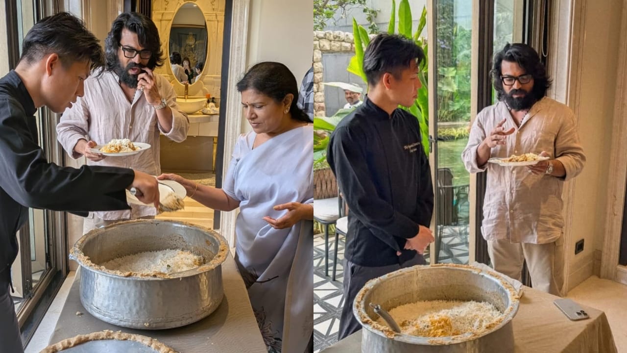 ರಾಮ್ ಚರಣ್ ಮನೆಯಲ್ಲಿ ಜಪಾನಿನ ಶೆಫ್ ಬಿರಿಯಾನಿ ಮಾಡಿ ಮನೆಯವರಿಗೆ ಉಣಬಡಿಸುತ್ತಿರುವ ಫೋಟೊ, ವಿಡಿಯೋಗಳು ಇದೀಗ ಸಾಮಾಜಿಕ ಜಾಲತಾಣದಲ್ಲಿ ವೈರಲ್ ಆಗಿವೆ. ರಾಮ್ ಚರಣ್ ಮನೆಯಲ್ಲಿ ಬಿರಿಯಾನಿ ಮಾಡಿರುವ ಶೆಫ್ನ ಹೆಸರು ಟಕಮಾಸ ಓಸವಾ. ಇವರು ಜಪಾನಿನ ಸೆಲೆಬ್ರಿಟಿ ಶೆಫ್. ಇವರು ಬಿರಿಯಾನಿ ಮಾಡುವುದರಲ್ಲಿ ಅದರಲ್ಲೂ ಪಾಟ್ ಬಿರಿಯಾನಿ ಮಾಡುವುದರಲ್ಲಿ ನಿಷ್ಣಾತರು. ಟಕಮಾಸಾ ಒಸಾವಾ ಅವರನ್ನು ಬಿರಿಯಾನಿ ಒಸಾವ ಎಂದೇ ಕರೆಯುತ್ತಾರೆ ಅಭಿಮಾನಿಗಳು. ಮಿಷಲಿನ್ ಗೈಡ್ ಪ್ರಶಸ್ತಿಯನ್ನು ಸಹ ಒಸಾವಾ ಪಡೆದುಕೊಂಡಿದ್ದಾರೆ.