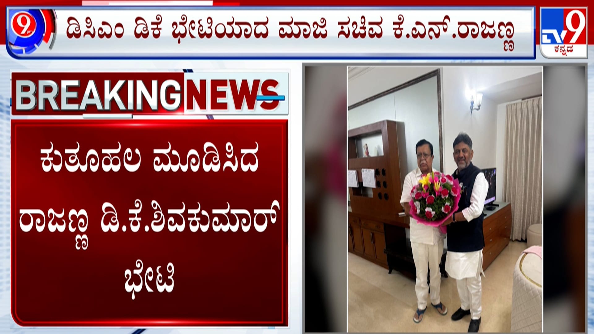 ಬೆಂಗಳೂರು, ಡಿಸೆಂಬರ್ 20: ರಾಜ್ಯ ರಾಜಕೀಯದಲ್ಲಿ ಪಟ್ಟದಾಟ ಜೋರಾಗಿದೆ. ಈ ಮಧ್ಯೆ ಮಹತ್ವದ ಬೆಳವಣಿಗೆಯೊಂದು ನಡೆದಿದೆ. ಬೆಂಗಳೂರಿನ ಖಾಸಗಿ ಅತಿಥಿ ಗೃಹದಲ್ಲಿ ಡಿಸಿಎಂ ಡಿಕೆ ಶಿವಕುಮಾರ್ ಮತ್ತು ಮಾಜಿ ಸಚಿವ ಕೆ.ಎನ್ ರಾಜಣ್ಣ ಭೇಟಿ ಮಾಡಿದ್ದಾರೆ. ಕಾಂಗ್ರೆಸ್ ನಾಯಕರ ಈ ಭೇಟಿ ಸಾಕಷ್ಟು ಕುತೂಹಲ ಮೂಡಿಸಿದೆ. ಅಪೆಕ್ಸ್ ಬ್ಯಾಂಕ್ ಚುನಾವಣೆ ವಿಚಾರವಾಗಿ ಚರ್ಚೆ ಮಾಡಿರುವ ಸಾಧ್ಯತೆ ಎನ್ನಲಾಗುತ್ತಿದೆ.