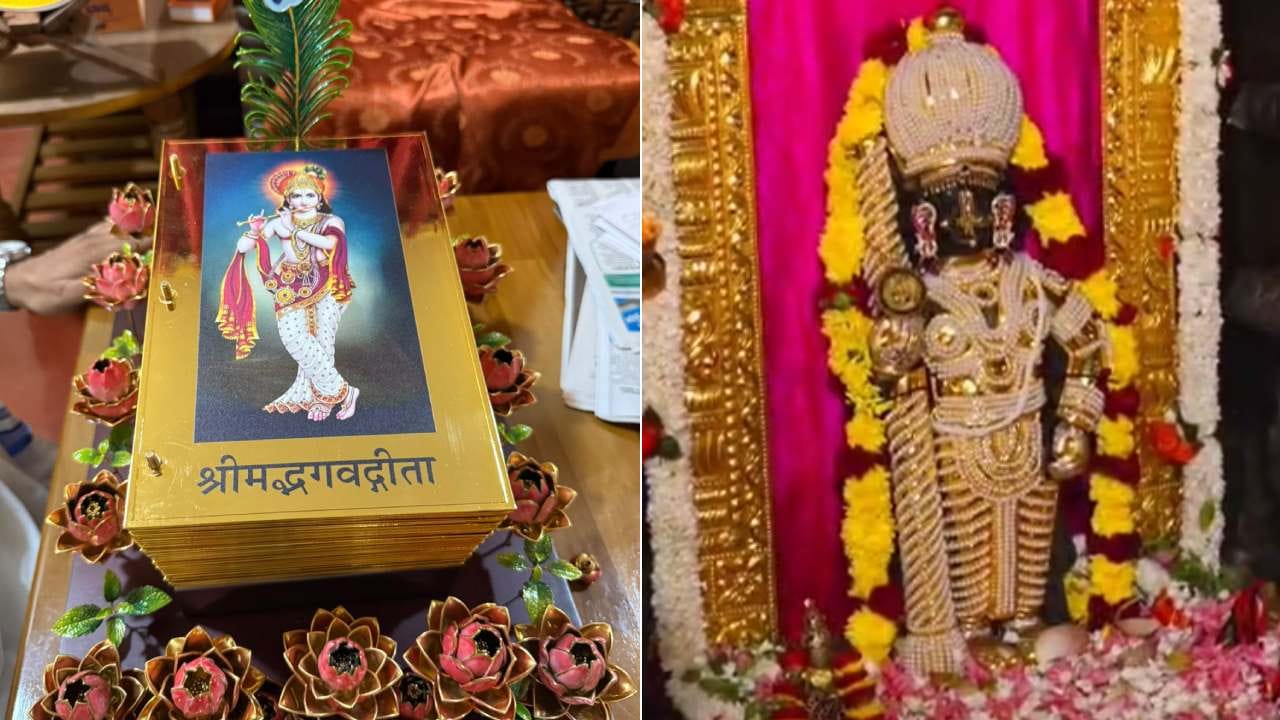 ಉಡುಪಿ, ಜನವರಿ 05: ಉಡುಪಿ ಶ್ರೀ ಕೃಷ್ಣನಿಗೆ ದೆಹಲಿಯ ಭಕ್ತರೊಬ್ಬರು ಚಿನ್ನದ ಭಗವದ್ಗೀತೆ ಅರ್ಪಣೆಗೆ ಮುಂದಾಗಿದ್ದಾರೆ. ಜನವರಿ 8ರಂದು ನಡೆಯಲಿರುವ ವಿಶ್ವಗೀತಾ ಪರ್ಯಾಯ ಸಮಾರೋಪ ವಿಶೇಷ ಕಾರ್ಯಕ್ರಮದಂದು ಕೃಷ್ಣ ಸನ್ನಿಧಿಯಲ್ಲಿ ಹೊನ್ನಿನ ಭಗವದ್ಗೀತೆ ಲೋಕಾರ್ಪಣೆಗೊಳ್ಳಲಿದೆ. ಸುಮಾರು 2 ಕೋಟಿ ರೂ ವೆಚ್ಚದಲ್ಲಿ ಚಿನ್ನದ ಹಾಳೆಯಲ್ಲಿ ಭಗವದ್ಗೀತೆಯ 18 ಅಧ್ಯಾಯಗಳ 700 ಶ್ಲೋಕಗಳನ್ನು ಮುದ್ರಿಸಲಾಗಿದೆ. ಚಿನ್ನದ ರಥದಲ್ಲಿ ಭಗವದ್ಗೀತೆಯ ಮೆರವಣಿಗೆ ಮೂಲಕ ಅರ್ಪಿಸಲಿದ್ದಾರೆ. ಅಯೋಧ್ಯ ಶ್ರೀರಾಮ ಜನ್ಮಭೂಮಿ ತೀರ್ಥಕ್ಷೇತ್ರ ಟೆಸ್ಟ್ ಪ್ರಧಾನ ಕಾರ್ಯದರ್ಶಿ ಚಂಪತ್ ರಾಯ್ ಸೇರಿ ಅನೇಕ ಗಣ್ಯರು ಕಾರ್ಯಕ್ರಮದಲ್ಲಿ ಭಾಗಿಯಾಗಲಿದ್ದಾರೆ.