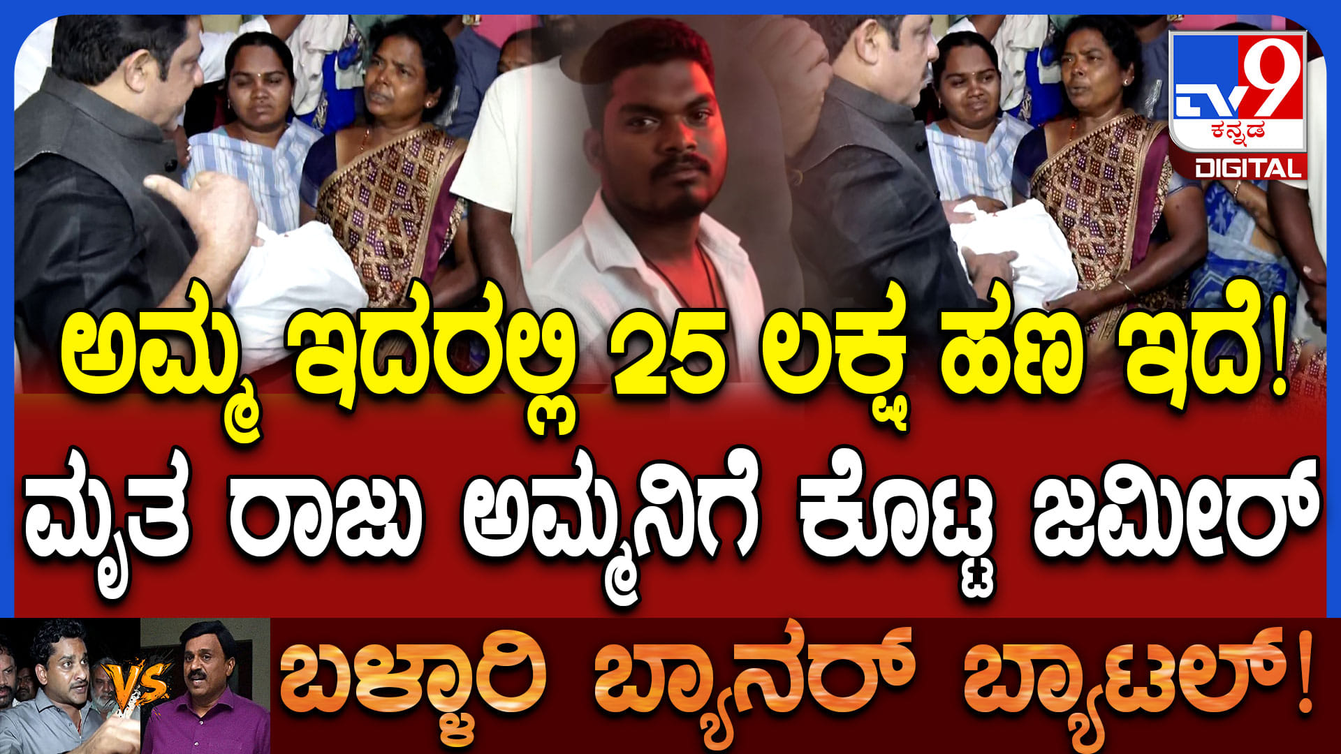 ಬಳ್ಳಾರಿ, ಜನವರಿ 03: ಬಳ್ಳಾರಿಯಲ್ಲಿ ನಡೆದ ಬ್ಯಾನರ್ ಗಲಾಟೆಯಲ್ಲಿ ಮೃತಪಟ್ಟ ರಾಜಶೇಖರ್ ಮನೆಗೆ ಇಂದು ಸಚಿವ ಜಮೀರ್ ಅಹ್ಮದ್ ಖಾನ್ ಭೇಟಿ ನೀಡಿ ಕುಟುಂಬಕ್ಕೆ ಸಾಂತ್ವನ ಹೇಳಿದ್ದಾರೆ. ಈ ವೇಳೆ ಮೃತನ ಕುಟುಂಬಕ್ಕೆ 25 ಲಕ್ಷ ರೂ. ಪರಿಹಾರ ನೀಡಿದ್ದಾರೆ. ನಿಮ್ಮೊಂದಿಗೆ ನಮ್ಮ ಸರ್ಕಾರ ಇರುತ್ತೆ, ನಮ್ಮ ಶಾಸಕರು ಇದ್ದಾರೆ ಎಂದು ಧೈರ್ಯ ತುಂಬಿದ್ದಾರೆ. ಸಚಿವ ಜಮೀರ್ಗೆ ಶಾಸಕರಾದ ಭರತ್ ರೆಡ್ಡಿ ಮತ್ತು ಗಣೇಶ್ ಸಾಥ್ ನೀಡಿದರು.
