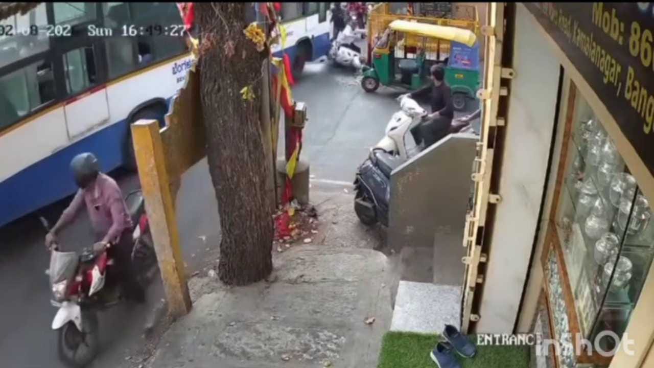 ಬೆಂಗಳೂರು, ಫೆಬ್ರವರಿ 09: ಬ್ರೇಕ್ ಫೇಲ್ ಆಗಿ ಬಿಎಂಟಿಸಿ ಬಸ್ ಮರಕ್ಕೆ ಡಿಕ್ಕಿ ಹೊಡೆದ ಭೀಕರ ಅಪಘಾತ ಭಾನುವಾರ ಸಂಜೆ ಕಮಲಾನಗರದಲ್ಲಿ ಸಂಭವಿಸಿದೆ. ಸಂಜೆ 6.49ರ ಸುಮಾರಿಗೆ ಡಾ. ರಾಜ್ ಕುಮಾರ್ ಸರ್ಕಲ್ ಬಳಿ ಈ ಘಟನೆ ನಡೆದಿದ್ದು, ಚಾಲಕನ ನಿರ್ಲಕ್ಷ್ಯವೇ ಅಪಘಾತಕ್ಕೆ ಕಾರಣ ಎನ್ನಲಾಗಿದೆ. ನಿಯಂತ್ರಣ ತಪ್ಪಿದ ಬಸ್ ಜನರ ಮೇಲೆ ನುಗ್ಗುವ ಹಂತಕ್ಕೆ ಬಂದಿದ್ದು, ಕೂದಲೆಳೆಯ ಅಂತರದಲ್ಲಿ ಯುವಕನೊಬ್ಬ ಪಾರಾಗಿದ್ದಾನೆ. ಆಟೋ ಚಾಲಕ, ಪ್ಯಾಸೆಂಜರ್ಸ್ ಹಾಗೂ ಬೈಕ್ ಸವಾರರು ಮಹಾ ಅಪಾಯದಿಂದ ತಪ್ಪಿಸಿಕೊಂಡರೂ ಆಟೋ ಹಾಗೂ ಬೈಕ್ಗೆ ಹಾನಿಯಾಗಿದೆ. ಬಸ್ನಲ್ಲಿದ್ದ ಕೆಲ ಪ್ರಯಾಣಿಕರಿಗೆ ಸಣ್ಣಪುಟ್ಟ ಗಾಯಗಳಾಗಿವೆ.