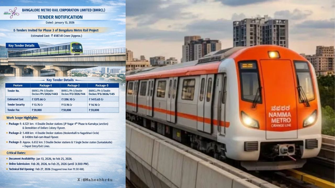 ನಮ್ಮ ಮೆಟ್ರೋದ ಮೂರನೇ ಹಂತದ ಪ್ರಾಜೆಕ್ಟ್ಗೆ ಪ್ರಧಾನಿ ನರೇಂದ್ರ ಮೋದಿ ಶಿಲಾನ್ಯಾಸ ನೆರವೇರಿಸಿದ್ದರೂ ಯೋಜನೆ ಮಾತ್ರ ಇನ್ನೂ ಆರಂಭವಾಗಿರಲಿಲ್ಲ. 2024ರ ಆಗಸ್ಟ್ 16ರಂದು ನಮ್ಮ ಮೆಟ್ರೋ ಆರೆಂಜ್ ಲೈನ್ ಯೋಜನೆಗೆ ಕೇಂದ್ರ ಸರ್ಕಾರವು ಅನುಮೋದನೆ ನೀಡಿತ್ತು. ಅದಾಗಿ ಒಂದು ವರ್ಷಕ್ಕಿಂತ ಹೆಚ್ಚು ಕಾಲ ಕಳೆದರೂ ಬೆಂಗಳೂರು ಮೆಟ್ರೋ ರೈಲು ನಿಗಮ ಲಿಮಿಟೆಡ್ (BMRCL) ಇನ್ನೂ ಕಾಮಗಾರಿಗಳಿಗಾಗಿ ಟೆಂಡರ್ಗಳನ್ನು ಆಹ್ವಾನಿಸಿಲ್ಲ ಎಂಬ ಬೇಸರ ಸಿಲಿಕಾನ್ ಸಿಟಿ ಮಂದಿಯನ್ನು ಕಾಡಿತ್ತು. ಈ ನಡುವೆ BMRCL ಶುಭ ಸುದ್ದಿ ನೀಡಿದೆ.