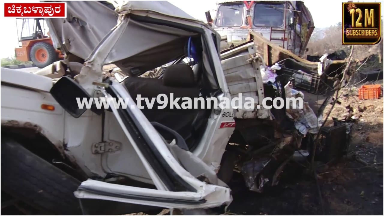 ಚಿಕ್ಕಬಳ್ಳಾಪುರ, ಫೆಬ್ರವರಿ 10: ಬೆಂಗಳೂರು ಹೈದರಾಬಾದ್ ರಾಷ್ಟ್ರೀಯ ಹೆದ್ದಾರಿ 44 ರ ಚಿಕ್ಕಬಳ್ಳಾಪುರದ ಬಳಿ ಭೀಕರ ರಸ್ತೆ ಅಪಘಾತ ಸಂಭವಿಸಿ ಒಬ್ಬ ವ್ಯಕ್ತಿ ಸ್ಥಳದಲ್ಲೇ ಮೃತಪಟ್ಟಿದ್ದಾರೆ. ಮುಂದೆ ಹೋಗುತ್ತಿದ್ದ ಬೊಲೇರೊ ಜೀಪ್ಗೆ ಕಂಟೇನರ್ ಲಾರಿ ಹಿಂದಿನಿಂದ ಡಿಕ್ಕಿ ಹೊಡೆದು ಅರ್ಧಕಿಲೋ ಮೀಟರ್ ದೂರ ತಳ್ಳಿಕೊಂಡು ಹೋಗಿ ನಂತರ ಬೊಲೇರೊ ಮೇಲೆ ಉರುಳಿ ಬಿದ್ದಿದೆ. ಬೊಲೆರೋದಲ್ಲಿದ್ದ ಬೆಂಗಳೂರಿನ ಓರ್ವ ವ್ಯಕ್ತಿ ಸ್ಥಳದಲ್ಲೇ ಮೃತಪಟ್ಟಿದ್ದಾರೆ.