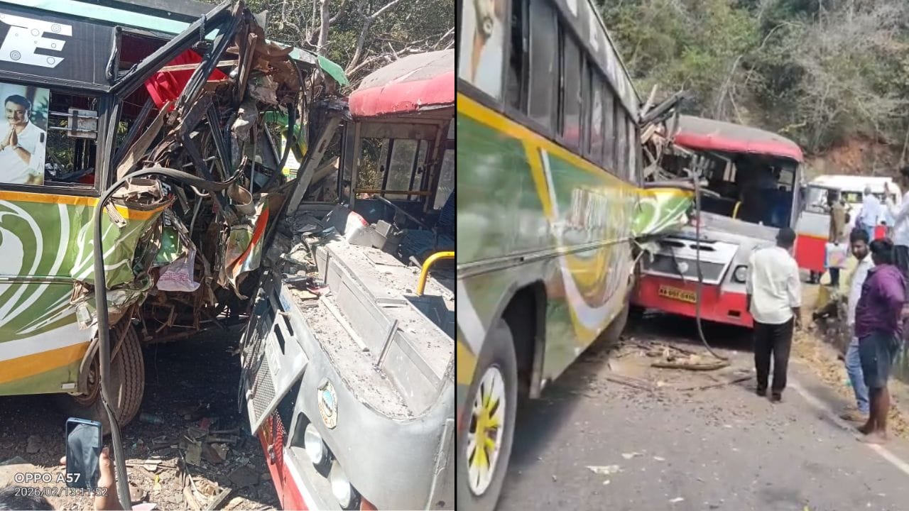 ಚಾಮರಾಜನಗರ, ಫೆ.13: ಮಹದೇಶ್ವರ ಬೆಟ್ಟದ ಜಾತ್ರೆ ಹೊತ್ತಲೇ ಒಂದು ಭೀಕರ ಅಪಘಾತ ನಡೆದಿದೆ. ಕೆಎಸ್ಆರ್ಟಿಸಿ ಬಸ ಮತ್ತು ಖಾಸಗಿ ಬಸ್ ಮುಖಾಮುಖಿಯಾಗಿ ಡಿಕ್ಕಿ ಹೊಡೆದಿದೆ. ಇದರ ಪರಿಣಾಮ 20ಕ್ಕೂ ಹೆಚ್ಚು ಪ್ರಯಾಣಿಕರಿಗೆ ಗಾಯಗಳಾಗಿವೆ. ಜಿಲ್ಲೆಯ ಹನೂರು ತಾಲೂಕಿನ ಮಹದೇಶ್ವರ ಬೆಟ್ಟದ 4ನೇ ತಿರುವಿನಲ್ಲಿ ಈ ಘಟನೆ ನಡೆದಿದೆ. ಮೈಸೂರಿನಿಂದ ಮಹದೇಶ್ವರ ಬೆಟ್ಟಕ್ಕೆ ಬರ್ತಿದ್ದ ಸರ್ಕಾರಿ ಬಸ್ ಮುಂದೆಯಿಂದ ಬಂದ ಖಾಸಗಿ ಬಸ್ಸಿಗೆ ಡಿಕ್ಕಿ ಹೊಡೆದಿದೆ. ಗಾಯಾಳುಗಳನ್ನು ಕೊಳ್ಳೇಗಾಲ ಸರ್ಕಾರಿ ಆಸ್ಪತ್ರೆಗೆ ದಾಖಲು ಮಾಡಲಾಗಿದೆ. ಸ್ಥಳಕ್ಕೆ ಮಹದೇಶ್ವರ ಬೆಟ್ಟದ ಪೊಲೀಸರ ಭೇಟಿ, ಪರಿಶೀಲನೆ ನಡೆಸಿದ್ದಾರೆ.