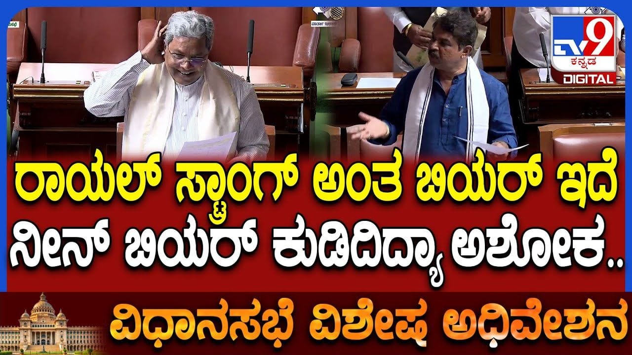 ಬೆಂಗಳೂರು, (ಫೆಬ್ರವರಿ 02): ರಾಜ್ಯಪಾಲರ ಭಾಷಣದ ಮೇಲಿನ ಚರ್ಚೆಗೆ ಸಿಎಂ ಸಿದ್ದರಾಮಯ್ಯನವರು ಇಂದು (ಫೆಬ್ರವರಿ 02) ಅಧಿವೇಶನದಲ್ಲಿ ಉತ್ತರ ನೀಡಿದರು. ಈ ವೇಳೆ ಸಿದ್ದರಾಮಯ್ಯ ಬಿಯರ್ ಬಗ್ಗೆ ಮಾತನಾಡಿ ಹಾಸ್ಯ ಚಟಾಕಿ ಹಾರಿಸಿದ್ದಾರೆ. ಮದ್ಯದ ದರ ಏರಿಕೆ ಸಂಬಂಧ ವಿಪಕ್ಷ ನಾಯಕ ಅಶೋಕ್ ಪ್ರಸ್ತಾಪಿಸಿದರು. ಇದಕ್ಕೆ ಪ್ರತಿಕ್ರಿಯಿಸಿದ ಸಿದ್ದರಾಮಯ್ಯ, ರಾಯಲ್ ಸ್ಟ್ರಾಂಗ್ ಅಂತ ಬಿಯರ್ ಇದೆ ಕಣ್ಣಯ್ಯ, ನೀನು ಕುಡಿದಿದ್ದೀಯೆನಯ್ಯ? ನೀನು ಕುಡಿದಿದ್ರೆ ತಾನೇ ಗೊತ್ತಾಗೋದು. ಕಿಂಗ್ ಪಿಶರ್ 225 ರೂ ಇದೆ. ತೆಲಂಗಾದಲ್ಲಿ 125 ರೂಪಾಯಿ ಇದೆ ಎಂದು ಹೇಳಿದರು.