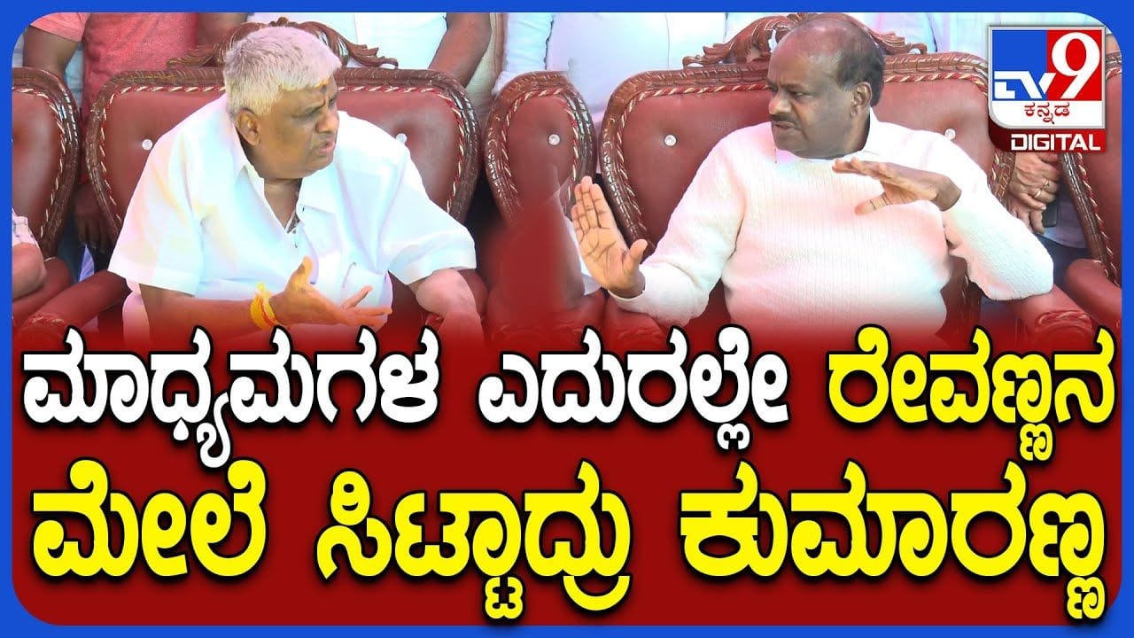 ಹಾಸನ, (ಜನವರಿ 21): ಇದೇ ಜನವರಿ 24ರಂದು ಜೆಡಿಎಸ್ ಹಾಸನದಲ್ಲಿ (Hassan) ಬೃಹತ್ ಸಮಾವೇಶ ಆಯೋಜಿಸಿದೆ. ಈ ಹಿನ್ನೆಲೆಯಲ್ಲಿ ಜೆಡಿಎಸ್ ರಾಜ್ಯಾಧ್ಯಕ್ಷ, ಕೇಂದ್ರ ಸಚಿವ ಎಚ್ಡಿ ಕುಮಾರಸ್ವಾಮಿ (HD Kumaraswamy )ಅವರು ಇಂದು (ಜನವರಿ 21) ಹಾಸನಕ್ಕೆ ಭೇಟಿ ನೀಡಿ ಸಮಾವೇಶದ ಪೂರ್ವ ಸಿದ್ಧತೆಗಳನ್ನು ಪರಿಶೀಲನೆ ಮಾಡಿದರು. ಬಳಿಕ ಎಚ್ಡಿಕೆ ಸುದ್ದಿಗೋಷ್ಠಿ ನಡೆಸಿ ಮಾತನಾಡುವ ವೇಳೆ ಸಹೋದರ ಎಚ್ಡಿ ರೇವಣ್ಣ (HD Revanna) ಮೇಲೆ ಕೋಪಗೊಂಡಿರುವ ಪ್ರಸಂಗ ಜರುಗಿದೆ. ಹೌದು…ಕುಮಾರಸ್ವಾಮಿ ಮಾತನಾಡುವಾಗ ಪಕ್ಕದಲ್ಲೇ ಕುಳಿತ್ತಿದ್ದ ರೇವಣ್ಣ ಸಹ ಅಡ್ಡ ಬಾಯಿ ಹಾಕಿದರು. ಇದರಿಂದ ಕುಮಾರಸ್ವಾಮಿ ಸ್ವಲ್ಪ ಸುಮ್ನೆ ಇರು ಎಂದು ಕೈ ಸಂಜ್ಞೆ ಮಾಡಿದರು. ಆಗ ರೇವಣ್ಣ ಸೈಲೆಂಟ್ ಮೂಡಿಗೆ ಜಾರಿದರು.