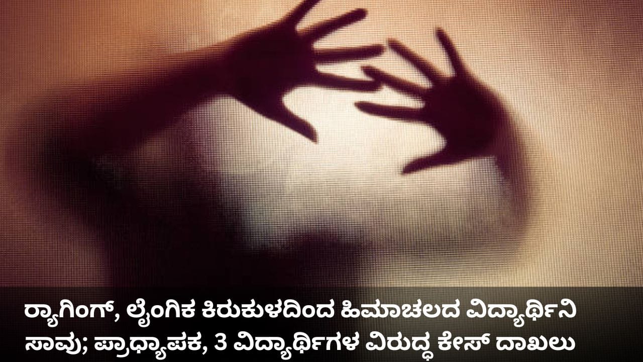 ಧರ್ಮಶಾಲಾ, ಜನವರಿ 2: ಹಿಮಾಚಲ ಪ್ರದೇಶದ ಕಾಲೇಜು ವಿದ್ಯಾರ್ಥಿನಿಯೊಬ್ಬಳ ಮೇಲೆ ಡಿಸೆಂಬರ್ 26ರಂದು ರ್ಯಾಗಿಂಗ್ (Ragging), ಲೈಂಗಿಕ ದೌರ್ಜನ್ಯ ನಡೆದಿದೆ. ಇದರಿಂದಾಗಿ ಆ ಯುವತಿ ಸಾವನ್ನಪ್ಪಿದ್ದಾಳೆ. ಈ ಹಿನ್ನೆಲೆಯಲ್ಲಿ ಕಾಲೇಜು ಪ್ರಾಧ್ಯಾಪಕ ಮತ್ತು ಮೂವರು ವಿದ್ಯಾರ್ಥಿನಿಯರ ವಿರುದ್ಧ ಕೇಸ್ ದಾಖಲಿಸಲಾಗಿದೆ. ಮೃತ ಬಾಲಕಿಯ ತಂದೆಯ ದೂರಿನ ಆಧಾರದ ಮೇಲೆ ಪೊಲೀಸರು ಪ್ರಾಧ್ಯಾಪಕ ಮತ್ತು ಇತರ ಮೂವರ ವಿರುದ್ಧ ರ್ಯಾಗಿಂಗ್ ಮತ್ತು ಲೈಂಗಿಕ ಕಿರುಕುಳದ ಆರೋಪದ ಮೇಲೆ ಕೇಸ್ ದಾಖಲಿಸಿದ್ದಾರೆ.