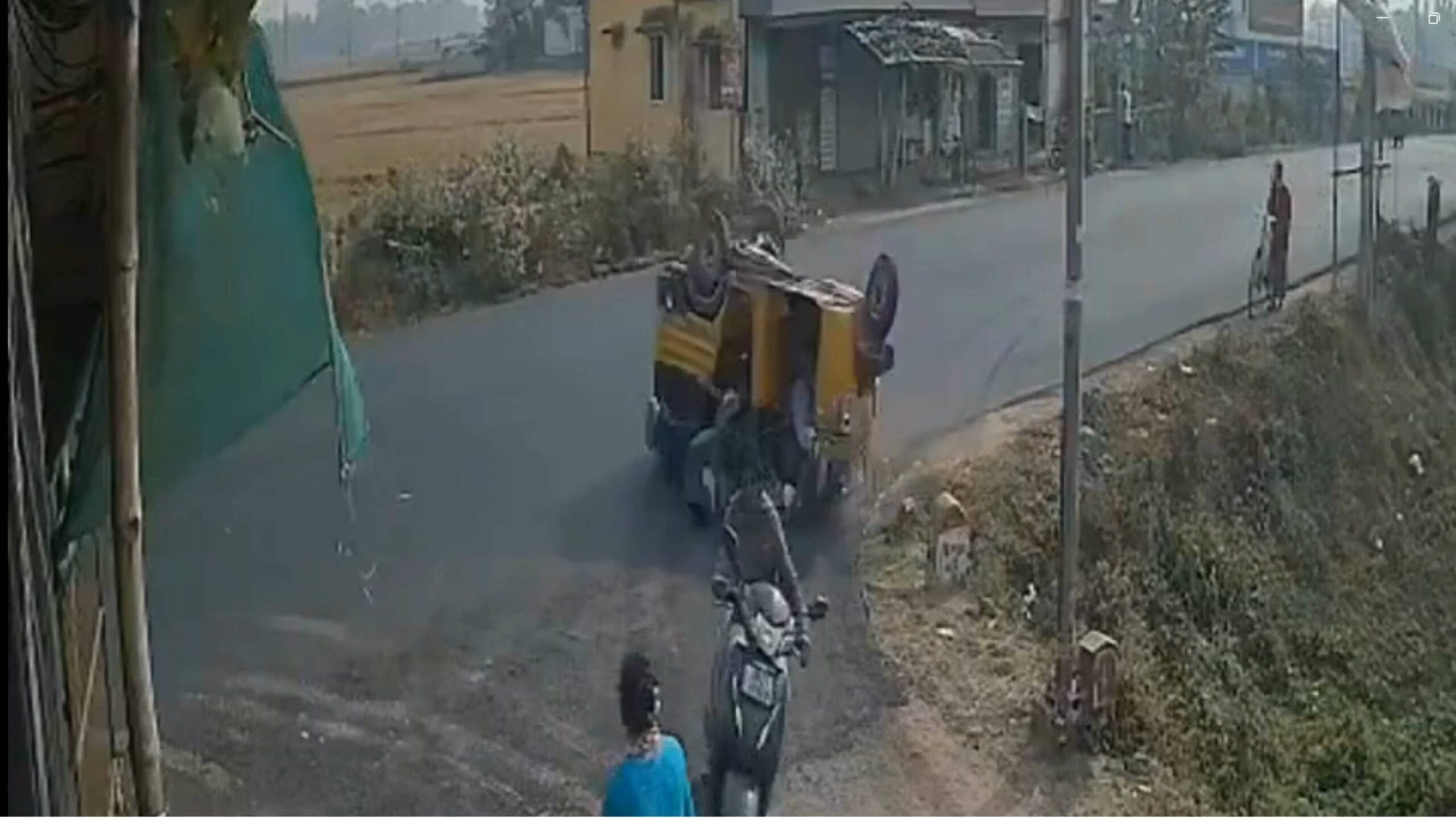 ಸ್ಕೂಟರ್ಗೆ ಡಿಕ್ಕಿ ತಪ್ಪಿಸಲು ಹೋಗಿ ಆಟೋರಿಕ್ಷಾವೊಂದು ಪಲ್ಟಿಯಾಗಿರುವ ಘಟನೆ ಒಡಿಶಾದ ರಾಷ್ಟ್ರೀಯ ಹೆದ್ದಾರಿ -55 ರಲ್ಲಿ ನಡೆದಿದೆ. ಆಟೋರಿಕ್ಷಾದಲ್ಲಿದ್ದ 5 ಜನರಿಗೆ ಗಾಯಗಳಾಗಿದ್ದು, ಆಸ್ಪತ್ರೆಗೆ ದಾಖಲಿಸಲಾಗಿದೆ. ಘಟನೆಗೆ ಸಂಬಂಧಿಸಿದ ಸಂಪೂರ್ಣ ದೃಶ್ಯಾವಳಿ ಸಿಸಿಟಿವಿಯಲ್ಲಿ ಸೆರೆಯಾಗಿದ್ದು, ಸದ್ಯ ವಿಡಿಯೋ ವ್ಯಾಪಕವಾಗಿ ಹರಿದಾಡುತ್ತಿದೆ. ವಿಡಿಯೋದಲ್ಲಿ ಆಟೋರಿಕ್ಷಾ ಸ್ಕೂಟರ್ಗೆ ಡಿಕ್ಕಿ ತಪ್ಪಿಸಲು ಸಡನ್ ಬ್ರೇಕ್ ಹಾಕಿದ್ದರಿಂದ ವಾಹನ ಪಲ್ಟಿಯಾಗಿರುವುದನ್ನು ಕಾಣಬಹುದು.