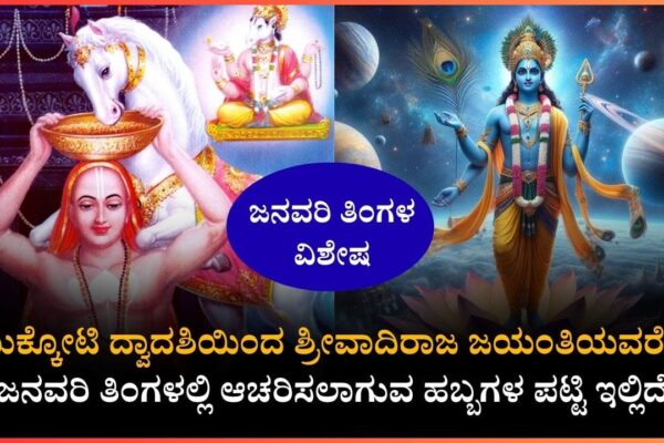 2026ರ ಮೊದಲ ತಿಂಗಳಾದ ಜನವರಿಗೆ ಇನ್ನೇನು ಕೆಲವೇ ಕೆಲವು ದಿನಗಳಷ್ಟೇ ಬಾಕಿಯಿವೆ. ಇಂಗ್ಲೀಷ್‌ ಕ್ಯಾಲೆಂಡರ್‌ ಪ್ರಕಾರ ಜನವರಿ ತಿಂಗಳನ್ನು ಹೊಸ ವರ್ಷದ ಆರಂಭ ಎಂದು ಪರಿಗಣಿಸಲಾಗುತ್ತದೆ. ಎಲ್ಲರೂ  ತಿಂಗಳನ್ನು ಸ್ವಾಗತಿಸಲು ಸಜ್ಜಾಗಿದ್ದಾರೆ. ಆದರೆ ಈ ತಿಂಗಳಲ್ಲಿ ಹಲವಾರು ಹಬ್ಬಗಳು (festivals) ಆಚರಣೆಗಳಿವೆ. ಮೊದಲ ತಿಂಗಳಾದ ಜನವರಿಯಲ್ಲಿ ಆಚರಿಸಲಾಗುವ ಹಬ್ಬಗಳ ಪಟ್ಟಿ ಇಲ್ಲಿದೆ. ಜನವರಿ ತಿಂಗಳಲ್ಲಿ ಆಚರಿಸಲಾಗುವ ಹಬ್ಬಗಳ ಪಟ್ಟಿ: ಜನವರಿ 01 : ಮುಕ್ಕೋಟಿ ದ್ವಾದಶಿ ಜನವರಿ 01 : ಪ್ರದೋಷ ಜನವರಿ 03 : ಹುಣ್ಣಿಮೆ…