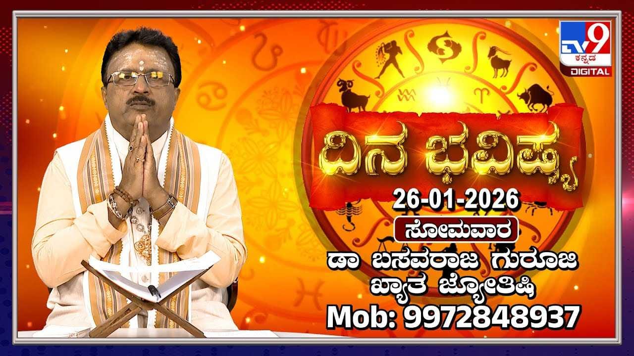 ಖ್ಯಾತ ಜ್ಯೋತಿಷಿ ಡಾ. ಬಸವರಾಜ ಗುರೂಜಿ ಅವರು 26 ಜನವರಿ 2026 ರ ದ್ವಾದಶ ರಾಶಿಗಳ ಫಲಾಫಲವನ್ನು ಪ್ರಸ್ತುತಪಡಿಸಿದ್ದಾರೆ. ಈ ದಿನವು 77ನೇ ಗಣರಾಜ್ಯೋತ್ಸವ ಹಾಗೂ ಭೀಷ್ಮಾಷ್ಟಮಿ, ಅಪ್ಪಯ್ಯ ದೀಕ್ಷಿತರ ಮತ್ತು ಸಂಗೊಳ್ಳಿ ರಾಯಣ್ಣನ ಪುಣ್ಯದಿನವಾಗಿದೆ. ಈ ವಿಶೇಷ ದಿನದಂದು ರವಿ ಮಕರ ರಾಶಿಯಲ್ಲಿ ಮತ್ತು ಚಂದ್ರ ಅಶ್ವಿನಿ ನಕ್ಷತ್ರದೊಂದಿಗೆ ಮೇಷ ರಾಶಿಯಲ್ಲಿ ಸಂಚರಿಸುತ್ತಿದ್ದಾರೆ.