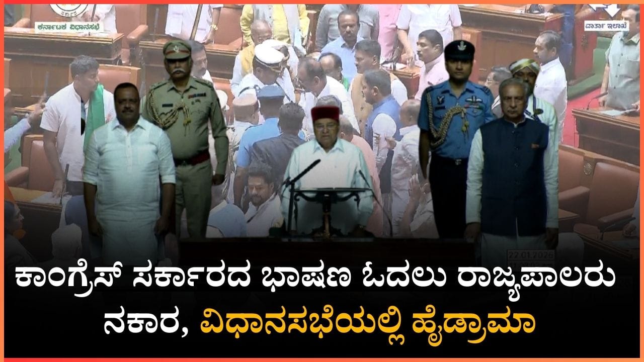 ಬೆಂಗಳೂರು, ಜನವರಿ 22: ನರೇಗಾ ಯೋಜನೆ ಹೆಸರನ್ನು ಕೇಂದ್ರ ಸರ್ಕಾರ ಬದಲಾಯಿಸಿರುವುದರ ವಿರುದ್ಧ ಕರ್ನಾಟಕ ಸರ್ಕಾರ ಕರೆದಿರುವ ವಿಶೇಷ ಅಧಿವೇಶನ ಕೂಡ ರಾಜ್ಯಪಾಲರು ಮತ್ತು ಸರ್ಕಾರದ ವಿರುದ್ಧದ ಸಂಘರ್ಷಕ್ಕೆ ಕಾರಣವಾಗಿದೆ. ಅಧಿವೇಶನ ಉದ್ದೇಶಿಸಿ ಮಾತನಾಡಲು ರಾಜ್ಯಪಾಲ ಥಾವರ್ಚಂದ್ ಗೆಹ್ಲೋಟ್ ವಿಧಾನಸಭೆಗೆ ಬರುತ್ತಾರೆಯೇ ಎಂಬ ಅನುಮಾನವಿತ್ತು. ಆದರೆ, ಇದನ್ನು ಹುಸಿ ಮಾಡಿದ ರಾಜ್ಯಪಾಲರು, ಕೇವಲ ಒಂದೆರಡು ವಾಕ್ಯಗಳಲ್ಲಿ ಮಾತನಾಡಿ ಶುಭಾಶಯ ತಿಳಿಸಿ ಸರ್ಕಾರ ಕೊಟ್ಟ ಭಾಷಣದ ಪ್ರತಿ ಓದದೆ ತೆರಳಿದರು. ಇದಕ್ಕೆ ಆಡಳಿತ ಪಕ್ಷದ ಶಾಸಕರು ತೀವ್ರ ವಿರೋಧ ವ್ಯಕ್ತಪಡಿಸಿ ಘೋಷಣೆಗಳನ್ನು ಕೂಗಿದರು. ಈ ಸಂದರ್ಭದಲ್ಲಿ ವಿಧಾನಸಭೆ ಹೈಡ್ರಾಮಾಕ್ಕೆ ಸಾಕ್ಷಿಯಾಯಿತು.