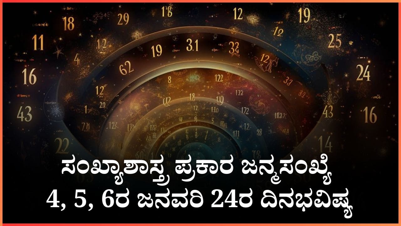 ಜನ್ಮಸಂಖ್ಯೆ 4, 5, 6ರ ದಿನಭವಿಷ್ಯವನ್ನು ನೀಡಲಾಗಿದೆ. ಜನ್ಮಸಂಖ್ಯೆ ಆಧಾರದಲ್ಲಿ ಜನವರಿ 24ರ ಶನಿವಾರದ ದಿನ ಭವಿಷ್ಯ ಹೇಗಿದೆ ಎಂಬ ಮಾಹಿತಿ ಇಲ್ಲಿದೆ.