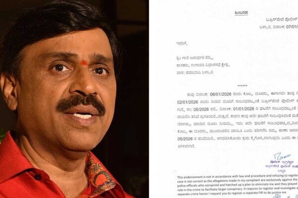 ಬಳ್ಳಾರಿ ಗಲಭೆಗೆ ಅಧಿಕಾರಿಗಳೇ ಕಾರಣವೆಂದು ದೂರು; FIR ಮಾಡದ್ದಕ್ಕೆ ರೆಡ್ಡಿ ಆಕ್ರೋಶ ಬಳ್ಳಾರಿ, ಜನವರಿ 09: ಜಿಲ್ಲೆಯಲ್ಲಿ ಬ್ಯಾನರ್ ವಿಚಾರಕ್ಕೆ ಸಂಬಂಧಿಸಿದ ಗಲಭೆ ಪ್ರಕರಣ ದಿನೇದಿನೇ ತಿರುವು ಪಡೆದುಕೊಳ್ಳುತ್ತಿದ್ದು, ಗಂಗಾವತಿ ಶಾಸಕ ಗಾಲಿ ಜನಾರ್ದನ ರೆಡ್ಡಿ ತೀವ್ರ ಆಕ್ರೋಶ ವ್ಯಕ್ತಪಡಿಸಿದ್ದಾರೆ. ಗಲಭೆಗೆ ಪೊಲೀಸ್ ಅಧಿಕಾರಿಗಳೇ ನೇರ ಕಾರಣ ಎಂದು ಆರೋಪಿಸಿ, ಬಳ್ಳಾರಿ ASP ರವಿಕುಮಾರ್, DSP ಚಂದ್ರಕಾಂತ ನಂದರೆಡ್ಡಿ ಹಾಗೂ ಕಾಂಗ್ರೆಸ್ ಶಾಸಕ ನಾರಾ ಭರತ್ ರೆಡ್ಡಿ ವಿರುದ್ಧ ಬ್ರೂಸ್ಪೇಟೆ ಪೊಲೀಸ್ ಠಾಣೆಗೆ ರೆಡ್ಡಿ ದೂರು ಸಲ್ಲಿಸಿದ್ದರು….
