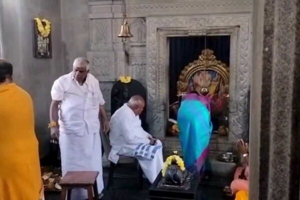 ಹಾಸನ, ಡಿಸೆಂಬರ್ 29: ಹುಟ್ಟೂರು ಹರದನಹಳ್ಳಿಯಲ್ಲಿ ಮನೆ ದೇವರಿಗೆ ಹಾಗೂ ಹರಪನಹಳ್ಳಿಯ ದೇವೇಶ್ವರಸ್ವಾಮಿ ದೇವಸ್ಥಾನದಲ್ಲಿ ಜೆಡಿಎಸ್ ನಾಯಕ ಎಚ್.ಡಿ.ದೇವೇಗೌಡ ವಿಶೇಷ ಪೂಜೆ ಸಲ್ಲಿಸಿದರು. ಪುತ್ರ ಎಚ್.ಡಿ.ರೇವಣ್ಣ, ಸೊಸೆ ಭವಾನಿ ರೇವಣ್ಣ ಜೊತೆಯಿದ್ದರು. ಹಾಸನದಲ್ಲಿ ನಡೆಯಲಿರುವ ಜೆಡಿಎಸ್ ಕಾರ್ಯಕರ್ತರ ಸಮಾವೇಶಕ್ಕೂ ಮುನ್ನ ಪೂಜೆ ನೆರವೇರಿಸಿದರು. ಕರ್ನಾಟಕದ ಮತ್ತಷ್ಟು ಸುದ್ದಿಗಳನ್ನು ಓದಲು ಇಲ್ಲಿ ಕ್ಲಿಕ್ ಮಾಡಿ. Source link