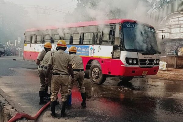 ಸಂಚರಿಸುತ್ತಿದ್ದಾಗಲೇ ಬಸ್ನ ಇಂಜಿನ್ನಲ್ಲಿ ಕಾಣಿಸಿಕೊಂಡ ಬೆಂಕಿ: ಕಾಲೇಜು ಬಳಿ ಹೊತ್ತಿ ಉರಿದ KSRTC ಬಸ್ – Kannada News | Chikkamagaluru KSRTC Bus Engine Fire Near Junior College; No Fatalities