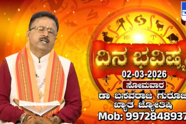 ಬೆಂಗಳೂರು, ಮಾ.2: ಖ್ಯಾತ ಜ್ಯೋತಿಷಿ ಡಾ. ಬಸವರಾಜ ಗುರೂಜಿ ಅವರು ಮಾರ್ಚ್ 2, ಭಾನುವಾರದ ದ್ವಾದಶ ರಾಶಿಗಳ ಫಲಾಫಲಗಳನ್ನು ವಿವರಿಸಿದ್ದಾರೆ. ವಿಶ್ವಾ ವಸನಾಮ ಸಂವತ್ಸರ, ಉತ್ತರಾಯಣ, ಫಾಲ್ಗುಣ ಮಾಸ, ಶಿಶಿರ ಋತು, ಶುಕ್ಲಪಕ್ಷ ಚತುರ್ದಶಿ ದಿನವಾದ ಇಂದು ಬೆಳಗ್ಗೆ 5:57ಕ್ಕೆ ಚತುರ್ದಶಿ ಮುಗಿದು ಹುಣ್ಣಿಮೆ ಪ್ರಾರಂಭವಾಗುತ್ತದೆ. ಆಶ್ಲೇಷ ನಕ್ಷತ್ರ, ಅತಿಗಂಡ ಯೋಗ, ವಣಿಕ ಕರಣವಿರುವ ಈ ದಿನದ ರಾಹುಕಾಲ ಬೆಳಗಿನ ಜಾವ 8:03 ರಿಂದ 9:32 ರವರೆಗೆ ಇರುತ್ತದೆ. ಸರ್ವಸಿದ್ಧಿ ಕಾಲ, ಸಂಕಲ್ಪ ಕಾಲ, ಶುಭಕಾಲ 9:33…