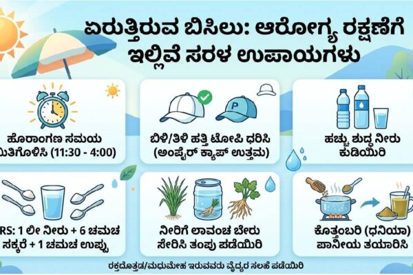 ದಿನ ಕಳೆದಂತೆ ಸೂರ್ಯನ ಪ್ರಖರತೆ ಏರುತ್ತಲೇ ಇದೆ. “ಇಂದು ಮಳೆ ಬರಬಹುದು, ನಾಳೆ ಬರಬಹುದು” ಎಂಬ ನಿರೀಕ್ಷೆ ಎಲ್ಲರಲ್ಲೂ ಸಹಜ. ಇತ್ತೀಚೆಗೆ ಶಿರಸಿಯಂತಹ ಮಲೆನಾಡಿನ ಭಾಗದಲ್ಲೂ ನೆರಳಿನಲ್ಲೇ ಸುಮಾರು 35°C ಉಷ್ಣಾಂಶ ದಾಖಲಾಗುತ್ತಿರುವುದು ಬಿಸಿಲಿನ ತೀವ್ರತೆಗೆ ಸಾಕ್ಷಿ. ಹಿಂದಿನ ಕಾಲದಲ್ಲಿ 33°C ದಾಟಿದರೆ ಮಳೆ ಬರುತ್ತದೆ ಎಂಬ ನಂಬಿಕೆಯಿತ್ತು, ಆದರೆ ಈಗಿನ ಹವಾಮಾನ ಬದಲಾವಣೆ ನಮಗೆ ಹೆಚ್ಚಿನ ಎಚ್ಚರಿಕೆಯನ್ನು ನೀಡುತ್ತಿದೆ. ಬಿಸಿಲಿನ ಧಗೆಯಿಂದ ನಿಮ್ಮನ್ನು ಮತ್ತು ನಿಮ್ಮ ಕುಟುಂಬವನ್ನು ರಕ್ಷಿಸಿಕೊಳ್ಳಲು ಇಲ್ಲಿವೆ ಕೆಲವು ಪ್ರಮುಖ ಸಲಹೆಗಳು: ಹೊರಾಂಗಣ…