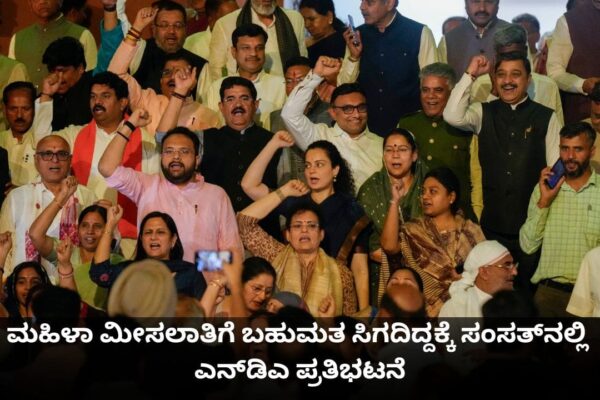 ಮಹಿಳಾ ಮೀಸಲಾತಿ ಮಸೂದೆಗೆ ಬಹುಮತ ಸಿಗದಿದ್ದಕ್ಕೆ ಸಂಸತ್ ಆವರಣದಲ್ಲಿ ಎನ್ಡಿಎ ನಾಯಕರ ಪ್ರತಿಭಟನೆ – Kannada News | NDA leaders protest in Parliament premises as the womens reservation bill fails to pass in Lok Sabha