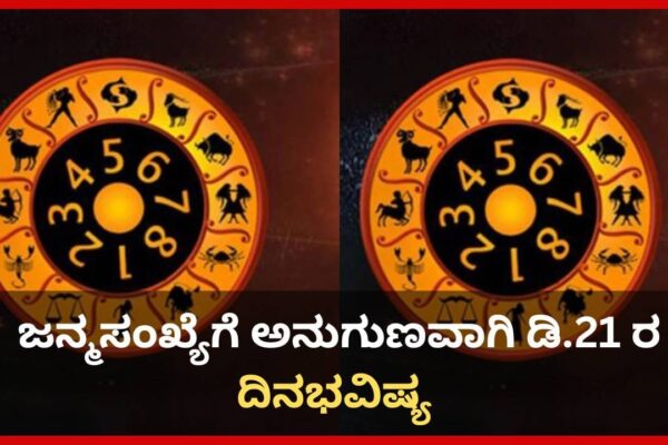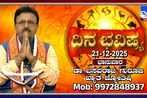 ಖ್ಯಾತ ಜ್ಯೋತಿಷಿ ಮತ್ತು ವಾಸ್ತು ಶಾಸ್ತ್ರಜ್ಞ ಡಾ. ಬಸವರಾಜ ಗುರೂಜಿ ಅವರು 2025ರ ಡಿಸೆಂಬರ್ 21 ಭಾನುವಾರದ ದ್ವಾದಶ ರಾಶಿಗಳ ಫಲಾಫಲವನ್ನು ನೀಡಿದ್ದಾರೆ. ವಿಶ್ವಾವಸುನಾಮ ಸಂವತ್ಸರ, ದಕ್ಷಿಣಾಯನ, ಪುಷ್ಯಮಾಸ, ಹೇಮಂತ ಋತು, ಶುಕ್ಲಪಕ್ಷ, ಪಾಡ್ಯ, ಪೂರ್ವಾಷಾಢ ನಕ್ಷತ್ರ, ವೃದ್ಧಿಯೋಗ ಮತ್ತು ಭವಕರಣ ಇರತಕ್ಕಂತ ಈ ದಿನದ ರಾಹುಕಾಲ 4:33 ರಿಂದ 5:59 ರ ವರೆಗೆ ಇರಲಿದೆ. ಶುಭಕಾಲ, ಸಂಕಲ್ಪ ಕಾಲವು ಮಧ್ಯಾಹ್ನ 1:42 ರಿಂದ 3:07 ರವರೆಗೆ ಇರಲಿದೆ. ಇಂದು ರವಿ ಮತ್ತು ಚಂದ್ರ ಇಬ್ಬರೂ ಧನುಸ್ಸು…