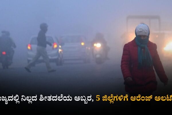 ರಾಜ್ಯದಲ್ಲಿ ನಿಲ್ಲದ ಶೀತದಲೆಯ ಅಬ್ಬರ; 5 ಜಿಲ್ಲೆಗಳಿಗೆ ಆರೆಂಜ್ ಅಲರ್ಟ್! ಬೆಂಗಳೂರು, ಡಿಸೆಂಬರ್ 20: ರಾಜ್ಯದೆಲ್ಲೆಡೆ ಶೀತದಲೆ (Weather Forecast) ಅಬ್ಬರಿಸುತ್ತಿದ್ದು, ಚಳಿಯ ಪ್ರಭಾವದಿಂದ ಜನಜೀವನ ಅಸ್ತವ್ಯಸ್ತವಾಗಿದೆ. ಬೆಂಗಳೂರಿನಲ್ಲೂ ಮೈಕೊರೆಯುವ ಚಳಿ ಜನರನ್ನು ಬೆಂಬಿಡದೆ ಕಾಡುತ್ತಿದ್ದು, ಮೋಡ ಮುಸುಕಿದ ವಾತಾವರಣವಿರಲಿದೆ ಎಂದು ಇಲಾಖೆ ತಿಳಿಸಿದೆ. ಕಲಬುರಗಿ, ರಾಯಚೂರು ಸೇರಿದಂತೆ 5 ಜಿಲ್ಲೆಗಳಿಗೆ ಆರೆಂಜ್ ಅಲರ್ಟ್ ಘೋಷಿಸಿರುವ ಇಲಾಖೆ, 10 ಜಿಲ್ಲೆಗಳಿಗೆ ಯೆಲ್ಲೋ ಅಲರ್ಟ್ ಘೋಷಿಸಿದೆ. ಯಾವ ಜಿಲ್ಲೆಗಳಿಗೆ ಅಲರ್ಟ್? ಬೀದರ್, ಕಲಬುರಗಿ, ರಾಯಚೂಎಉ, ವಿಜಯಪುರ, ಯಾದಗಿರಿ ಜಿಲ್ಲೆಗಳಲ್ಲಿ…