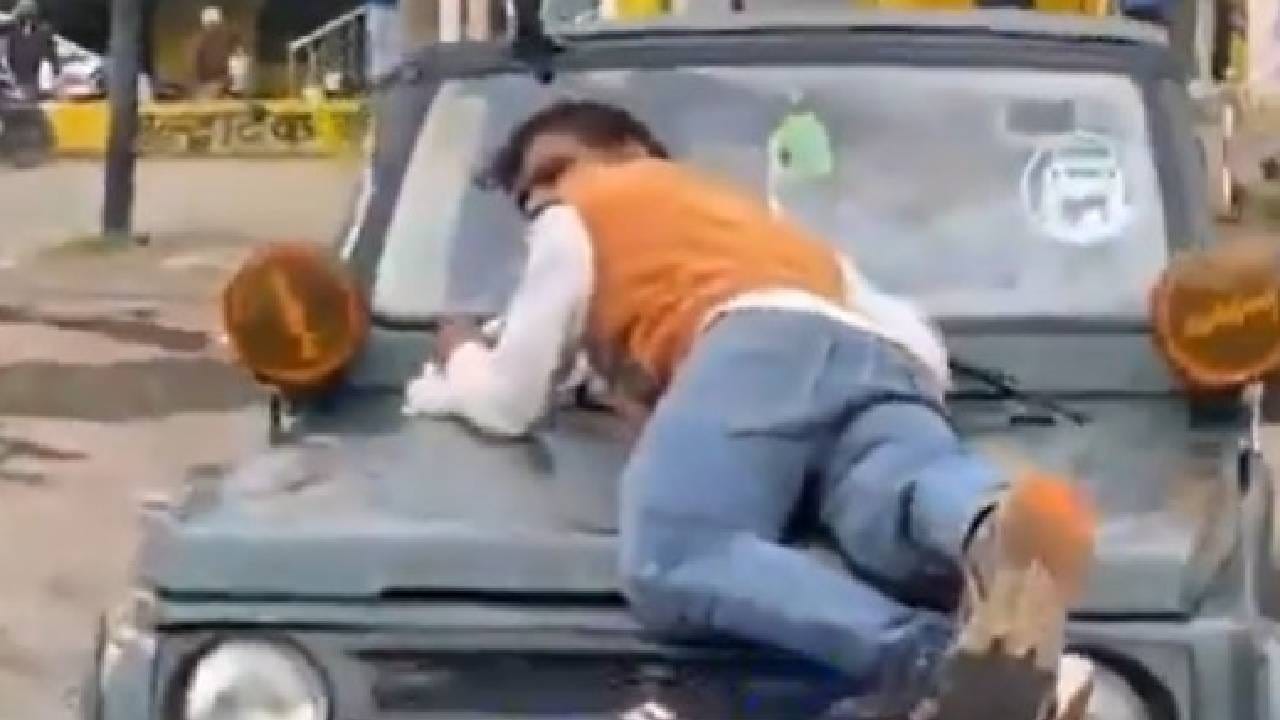 ರಾಂಪುರ, ಜನವರಿ 30: ಜೀಪ್ ಚಾಲಕನೊಬ್ಬ ಆಟೋ ರಿಕ್ಷಾಗೆ ಡಿಕ್ಕಿ ಹೊಡೆದು ಬಾನೆಟ್ ಮೇಲೆ ಚಾಲಕನನ್ನು ಹೊತ್ತೊಯ್ದಿರುವ ಘಟನೆ ರಾಂಪುರದ ಬಿಲಾಸ್ಪುರದ ಹೆದ್ದಾರಿಯಲ್ಲಿ ನಡೆದಿದೆ. ರಾಂಪುರದ ಬಿಲಾಸ್ಪುರದ ಹೆದ್ದಾರಿಯಲ್ಲಿ ಜೀಪ್ ಚಾಲಕನೊಬ್ಬ ಎದುರಿನಿಂದ ಬರುತ್ತಿದ್ದ ಇ-ರಿಕ್ಷಾಗೆ ಡಿಕ್ಕಿ ಹೊಡೆದ ಪರಿಣಾಮ ವಾಹನ ಪಲ್ಟಿಯಾಗಿ ಚಾಲಕ ಶಬ್ಬು ಗಾಯಗೊಂಡಿದ್ದು, ಅವರ ಮೂಗಿನಿಂದ ರಕ್ತಸ್ರಾವ ಆಗುತ್ತಿತ್ತು.
