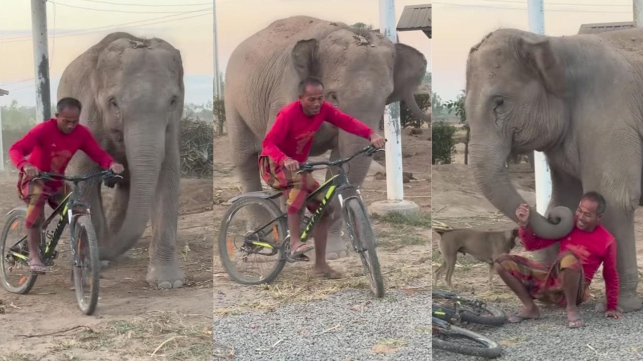 srithapthaifamily ಹೆಸರಿನ ಇನ್ಸ್ಟಾಗ್ರಾಮ್ ಖಾತೆಯಲ್ಲಿ ಹಂಚಿಕೊಳ್ಳಲಾದ ಈ ವಿಡಿಯೋದಲ್ಲಿ ಮಾಲೀಕ ಹಾಗೂ ಗಜರಾಜನ ಸುಂದರ ಬಾಂಧವ್ಯವನ್ನು ನೋಡಬಹುದು. ಈ ವಿಡಿಯೋದಲ್ಲಿ ವ್ಯಕ್ತಿಯೊಬ್ಬ ಸೈಕಲ್ ಏರಿ ಹೊರಟಿರುವುದನ್ನು ಕಾಣಬಹುದು. ಈ ವೇಳೆ ಆನೆಯು ತನ್ನ ಮಾಲೀಕನನ್ನು ತಡೆದು ನಿಲ್ಲಿಸಿ, ಸೈಕಲ್ನಿಂದ ಕೆಳಗೆ ಇಳಿಸಿದೆ.